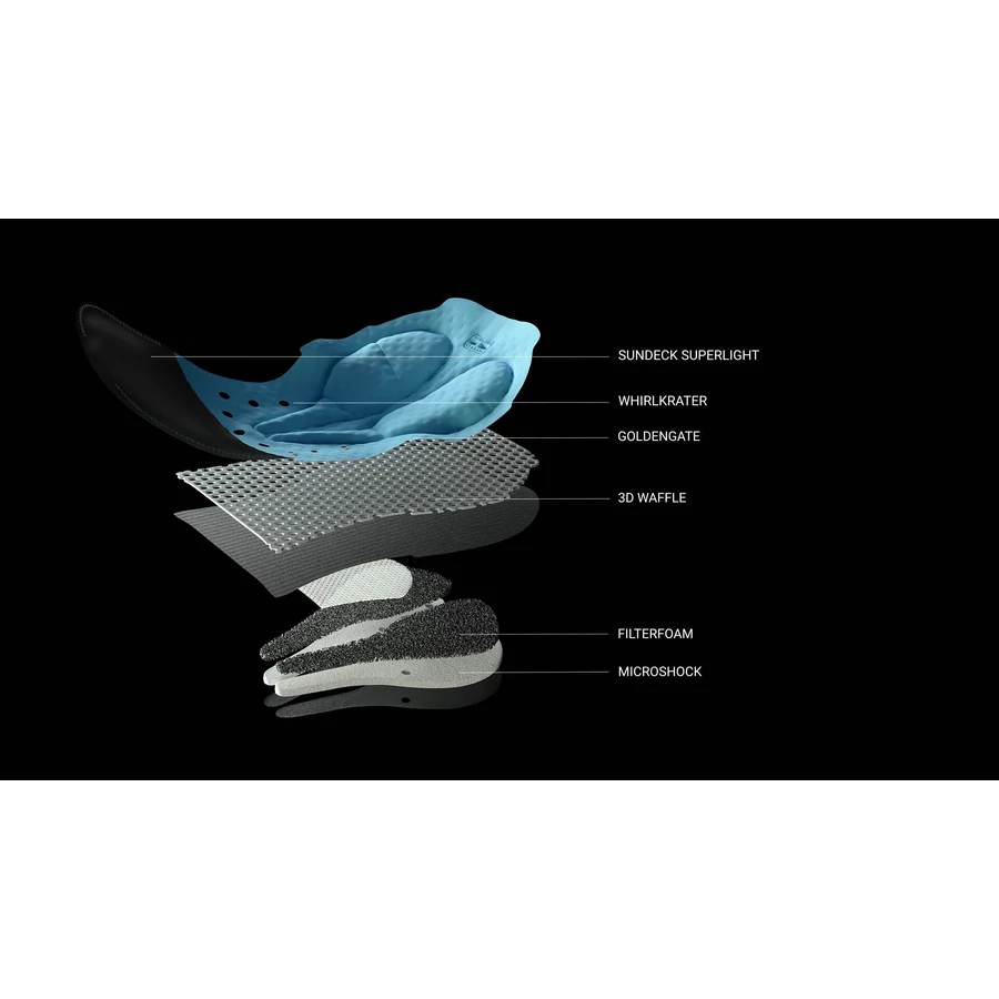 Mivel a nagy izomcsoportok megtámasztása, a súrlódás és a túlzott nyomás továbbra is kritikus problémák a hosszú távú tekerések során, a GTO szakít a hagyományos kantáros nadrág-kialakításokkal. A varrásvonalakat megfordították, és radikálisan átalakították a betét formáját, hogy megszüntessék a súrlódást és a nemi szervre nehezedő nyomást – miközben páratlan izomtámaszt nyújtanak a kúpos, gyűrődésmentes szárpanelek révén, amelyek tökéletesen követik a viselő testalkatát.