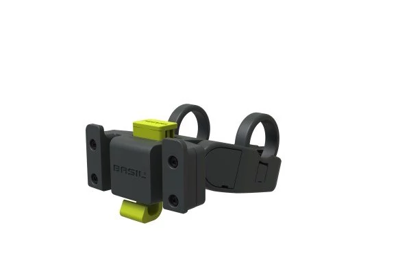 The Basil KF Handlebar Holder is a handy tool for attaching a removable bicycle basket or handlebar bag. This handlebar holder can be combined with bicycle accessories that are equipped with one of the following: - Basil KF Adapter plate - Basil BasEasy/KF Adapter Plate The system is easily attached to your handlebars. The holder also fits most city bikes, whether they be for men or women. In addition, the handlebar holder is suitable for E-bikes with a Bosch display, for example. The Basil KF Handlebar holder is suitable for fitting to measurements 22-31.8 mm Ø. The holder is made of plastic, making it lightweight and durable, nd can be mounted quickly and easily. The angle of the holder is adjustable and thanks to the mounting design, the holder is reassuringly stable. BASIL Handlebar Holder Klickfix felfogatásBasil felfogatás Handlebar Holder kormánytartó adapter Klickfix aljzathoz, kormánytáskákhoz, 22mm- 31,8mm.