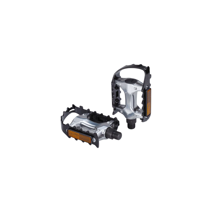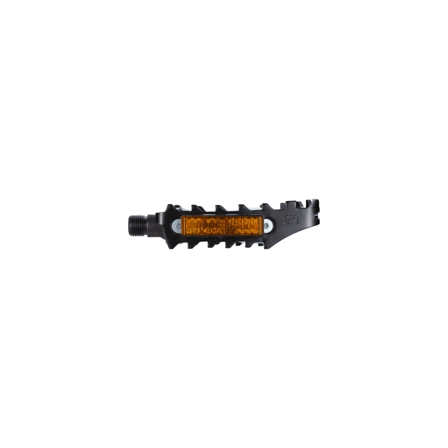 Könnyű és strapabíró pedál Nagy szilárdságú, hidegen kovácsolt alumínium test és ház a hosszú élettartamért és az alacsony súlyért. Nagyon erős CrMo tengely. Fogazott mintázat a felső és alsó részen a cipők rögzítéséhez még nedves körülmények között is. Dupla fényvisszaverős részek a még jobb láthatóságért. Kompatibilis: BPD-95 Nosetight és BPD-30 Bike & Tight-tal