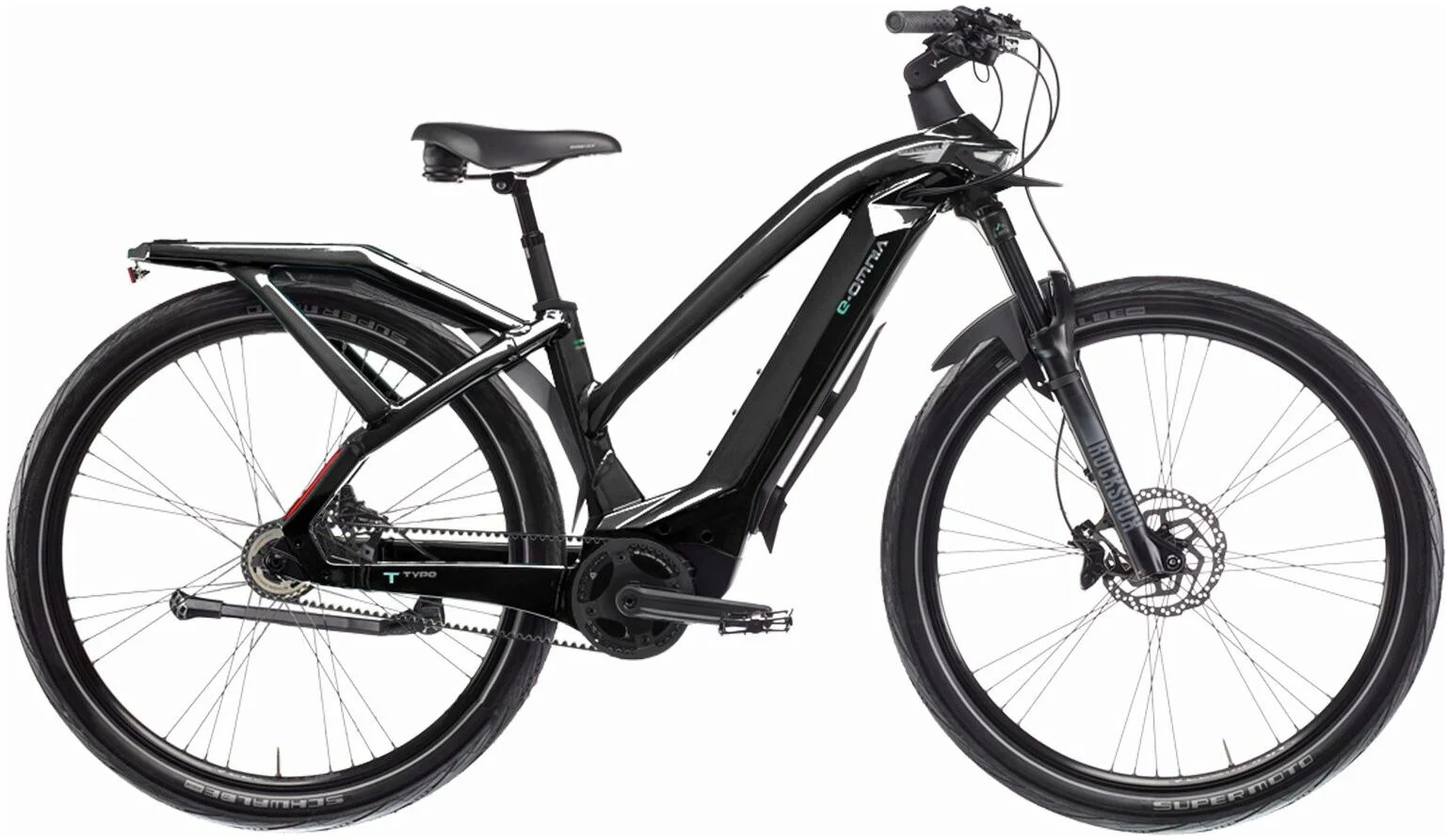 | Váz | E-OMNIA T-Type Step-through belt drive ALU sizes: 43-48-53 - IG 135 mm quick release dropouts (special dropout for internal gear) - Post mount 180 disc brake type - Internal cable routing in DT - Frame lock compatible - 625Wh compatible - custom rear |