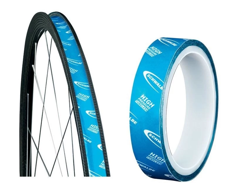 The tubeless rim tape and valve allows conventional wheels to be sealed and prepared for tubeless use.