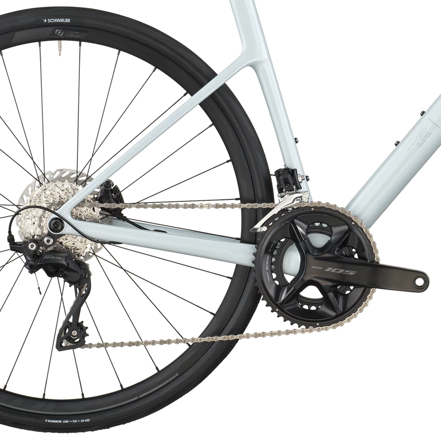 - Shimano 105 2x12: megbízható mechanikus váltás 24 fokozattal, jól használható áttételezéssel (50-34T és 11-34).