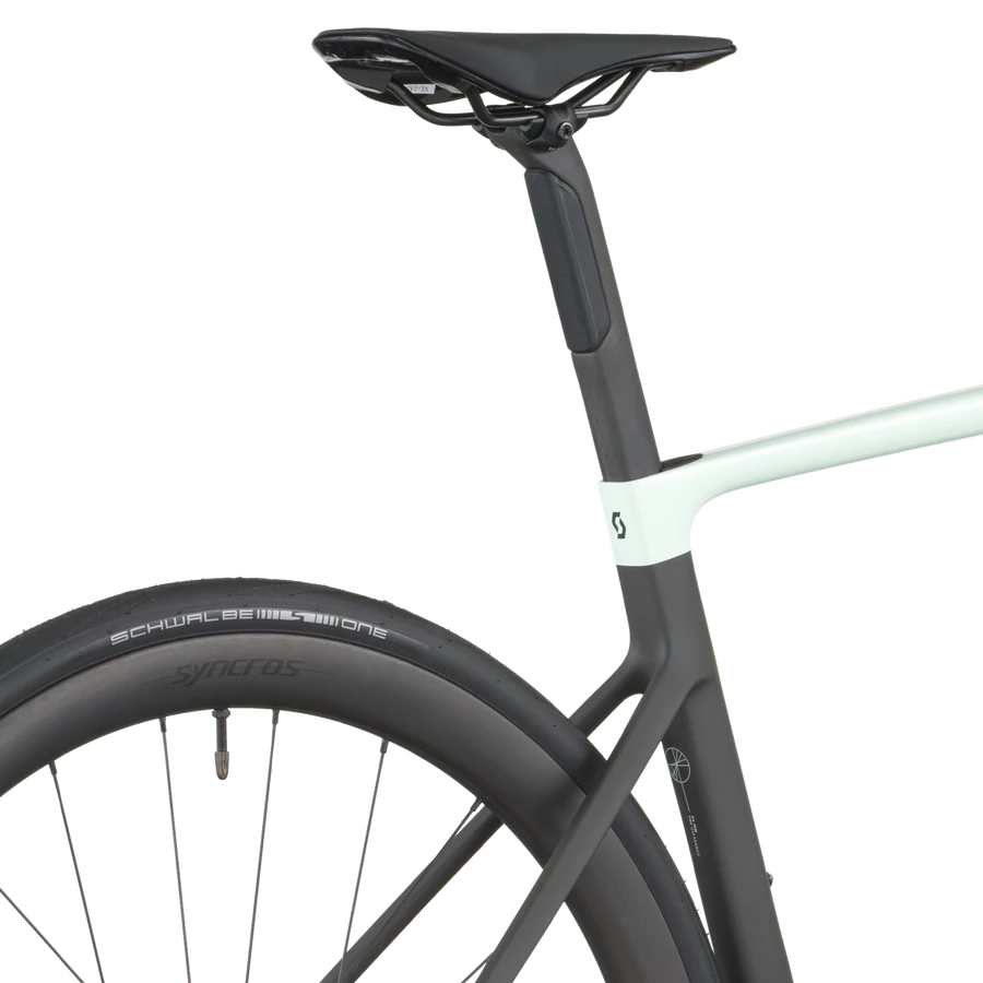 A frissített race geometria a modern országúti igényekhez igazodik: szélesebb gumikat fogad, miközben egységesebb kezelhetőséget kínál méretfüggetlenül. A 34 mm-es gumiférőhely praktikus tartalékot jelent a valós aszfaltviszonyokhoz, a vékonyabb falú üléscső és az új befogási rendszer pedig a Syncros SP-R101-CF nyeregcsővel együtt finomabb rugalmasságot kínál hosszabb menetek során. Az új Syncros cockpit-koncepció rendezettebb kábelvezetést és könnyebb állíthatóságot kínál, a rejtett T25 kulcs pedig egyszerűbbé teszi a beállításokat.