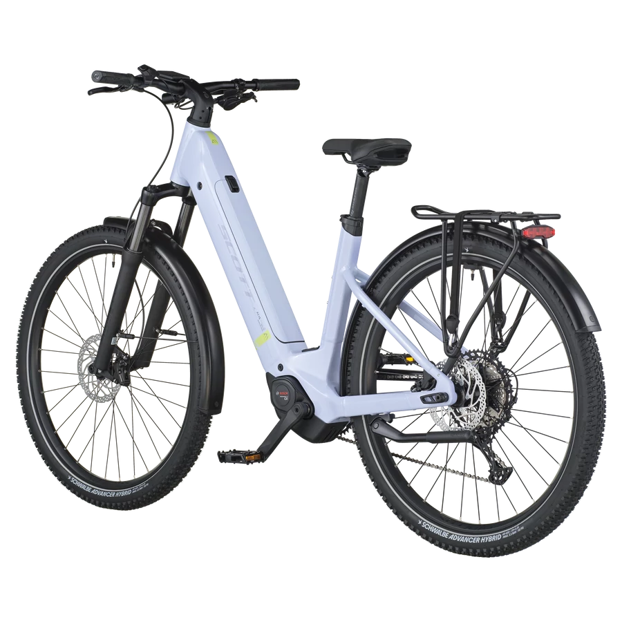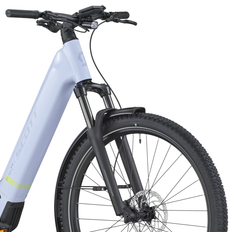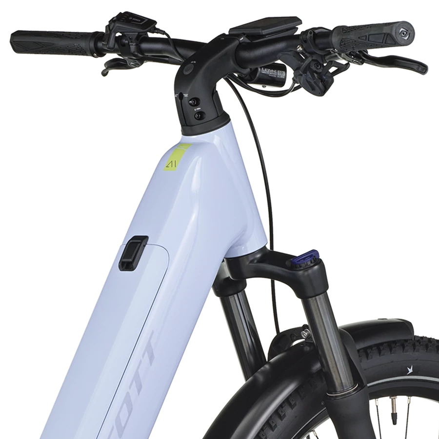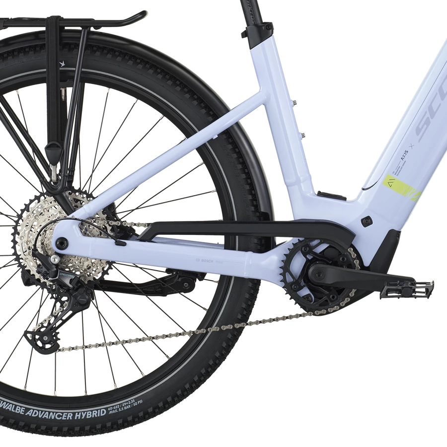 SCOTT AXIS eRIDE e-bike azoknak készült, akik egy kerékpárral szeretnék lefedni a városi közlekedést és a könnyebb terepezést is. A koncepció a „városi cirkálás + mountain bike érzés” metszetére épít: kényelmes geometria, 120 mm rugóút és stabil 29”-es platform (S–XL méretekben) segít a rosszabb utakon, földes, kavicsos ösvényeken történő haladásban. A megbízható hajtásról a Bosch Performance Line CX rendszer gondoskodik 85 Nm nyomatékkal, amelyet a beépített PowerTube 600 Wh akkumulátor egészít ki.