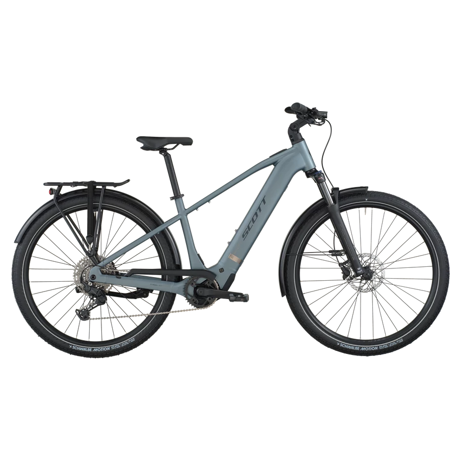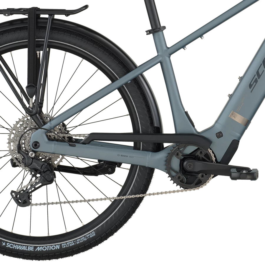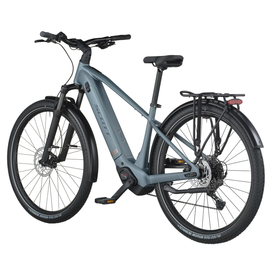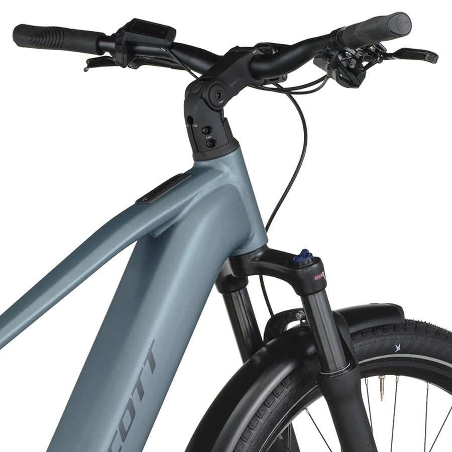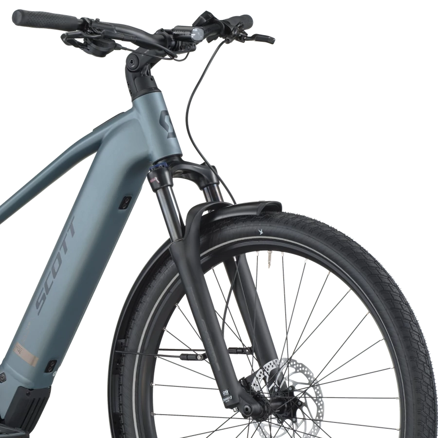 A SCOTT Sub Sport 20 egy modern, mindennapi használatra tervezett városi e-bike, amely a stabil irányíthatóságot a Bosch Smart System hajtásával ötvözi. A Bosch Performance Line PX középmotor és a 600 Wh PowerTube akkumulátor kényelmes rásegítést ad ingázáshoz, bevásárláshoz és hosszabb városi túrákhoz. A 29”-es kerekekre szerelt Schwalbe Big Apple abroncsok (60-622) és a 100 mm-es SR Suntour teleszkópvilla kisimítják az úthibákat, így a mindennapi utak kevésbé fárasztóak.