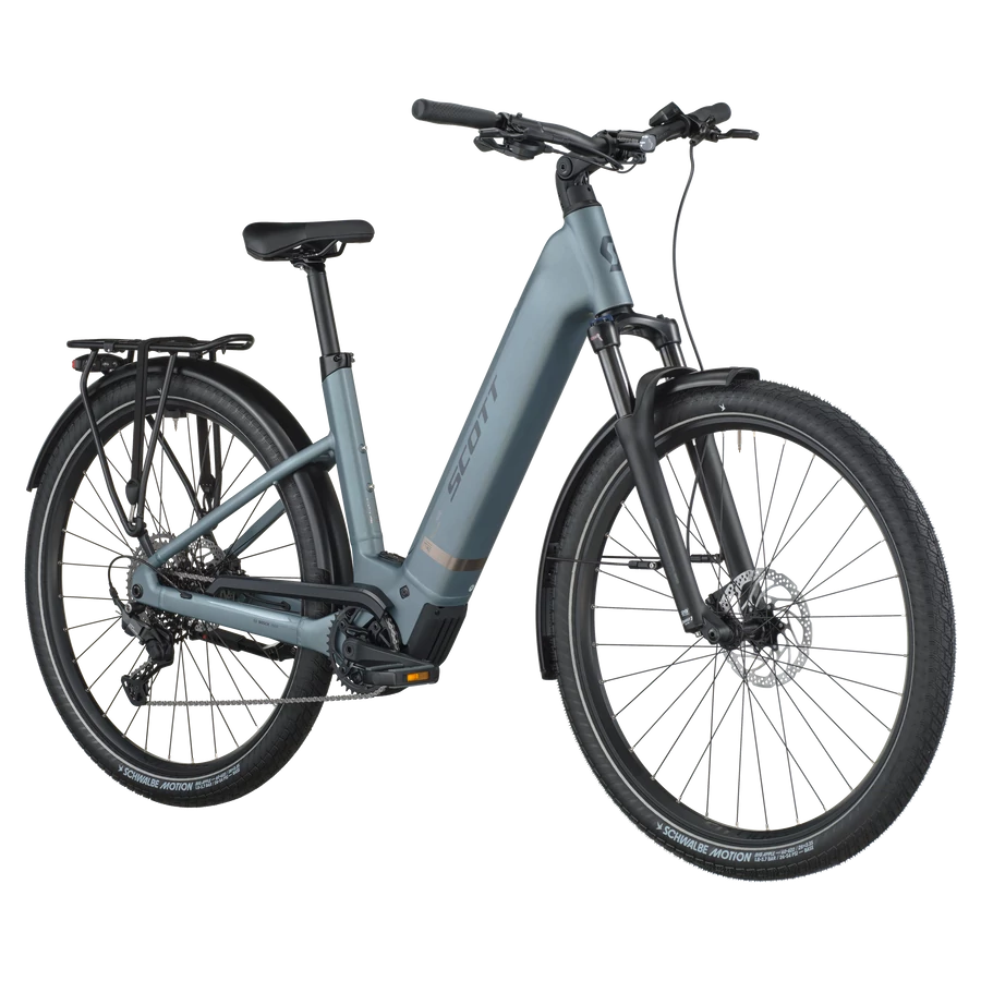 A SCOTT Sub Sport 20 Wave egy városi közlekedésre hangolt, alacsony átlépésű e-bike, amely megkönnyíti a fel- és leszállást akkor is, ha hétköznapi ruhában tekersz. A Bosch Performance Line PX középmotor és a 600 Wh PowerTube akkumulátor a mindennapi utakhoz ad kiszámítható rásegítést, a kiegyensúlyozott geometria pedig stabil irányíthatóságot nyújt forgalomban és rosszabb minőségű aszfalton egyaránt. A 29”-es kerékméret, ballonos Schwalbe Big Apple gumik (60-622), valamint a 100 mm-es SR Suntour teleszkópvilla segítenek kisimítani az úthibákat, így kényelmesebb a tempós ingázás és a városi túra.