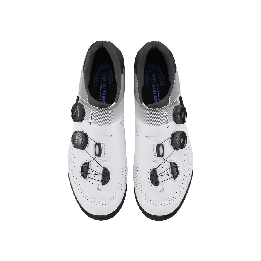 XC COMPETITION-LEVEL SHOES INFUSED WITH S-PHYRE DNA.Lightweight SHIMANO ULTREAD XC rubber outsole delivers competition-grade grip that lasts. Surround wrapping upper structure reduces overlap and provides a glove-like fit. Rider-tunable spikes allow riders to select and swap spikes to match riding styles and conditions. Ultra-rigid, lightweight carbon fiber reinforced midsole. Supple high-density synthetic leather with perforation and lightweight mesh/TPU combination bring superior fit and comfort. Dual independent BOA® L6 dials allow quick, micro tension adjustments. Adjustable powerzone lace guide securely holds forefoot. Low stack height midsole helps stabilize foot, maximizes power transfer and efficiency.